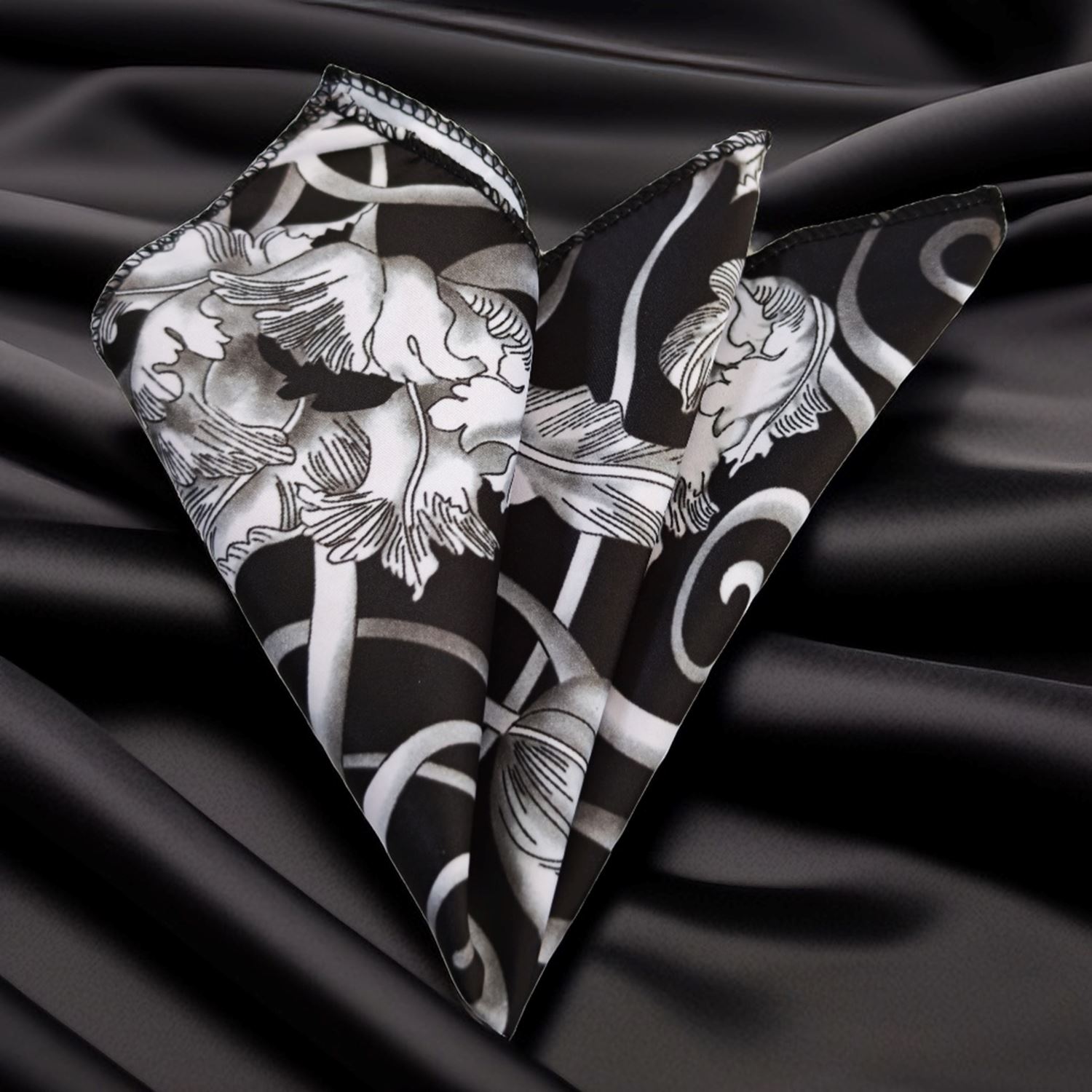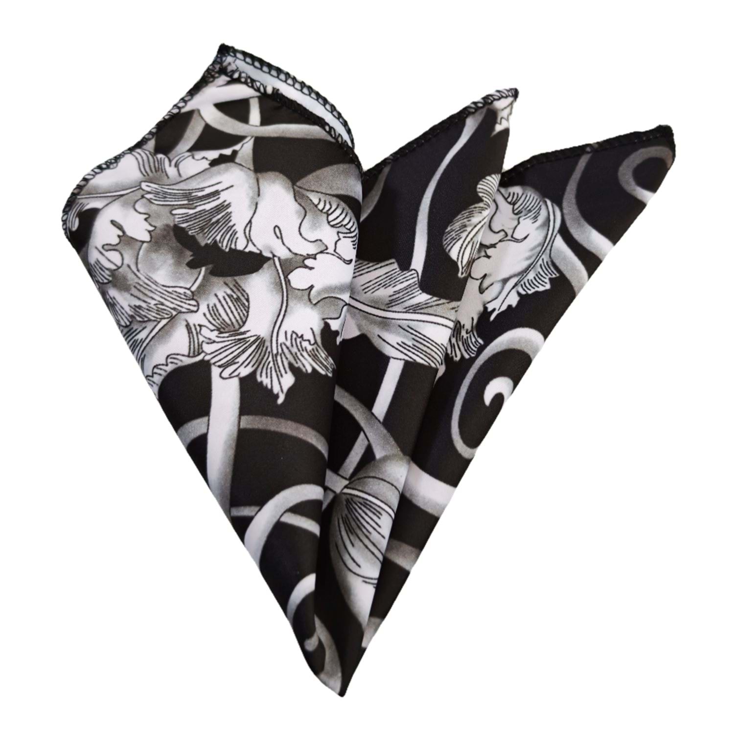Black with Gray Paisley Pocket Square