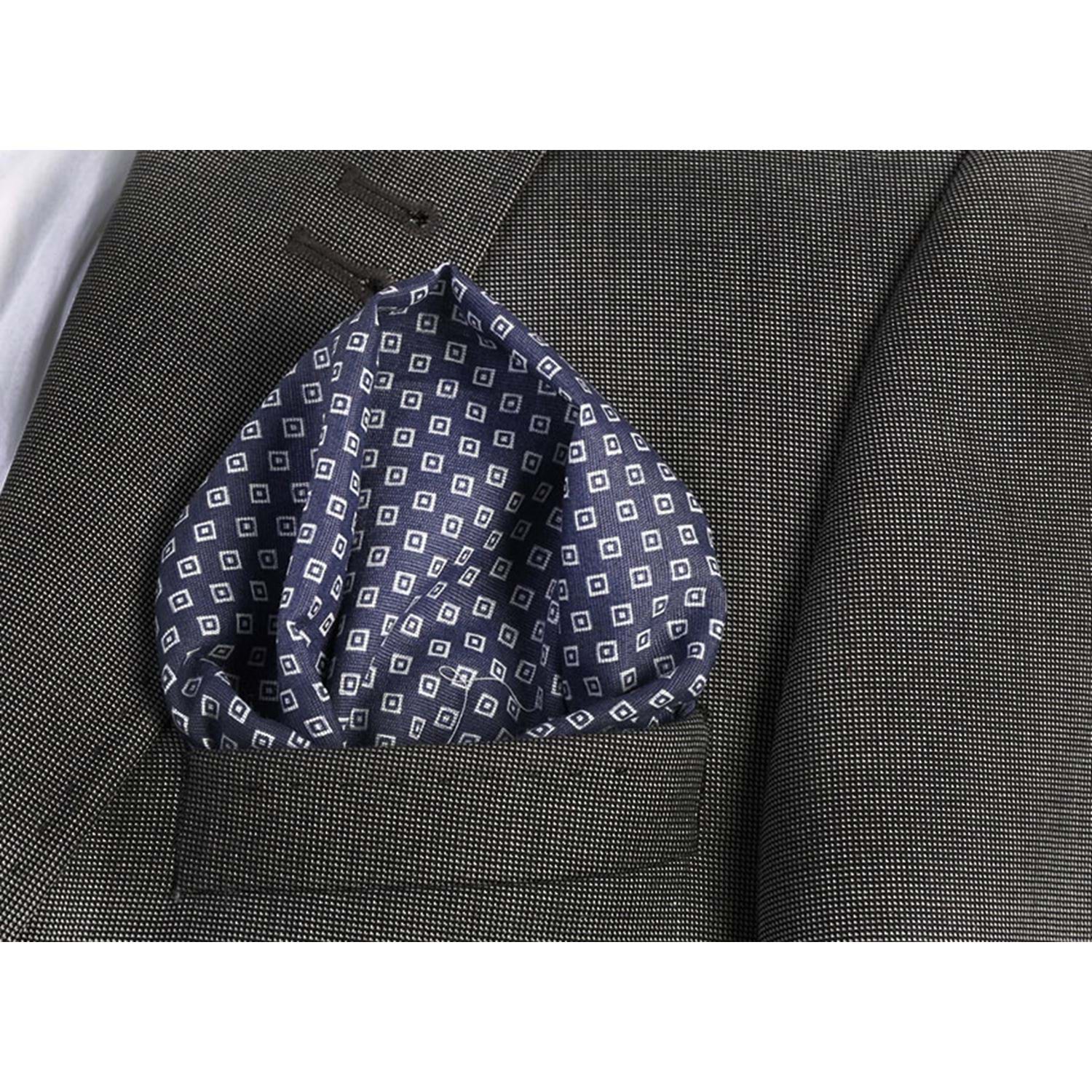 Mavi Beyaz Kare Desen Yaka Cep Mendili