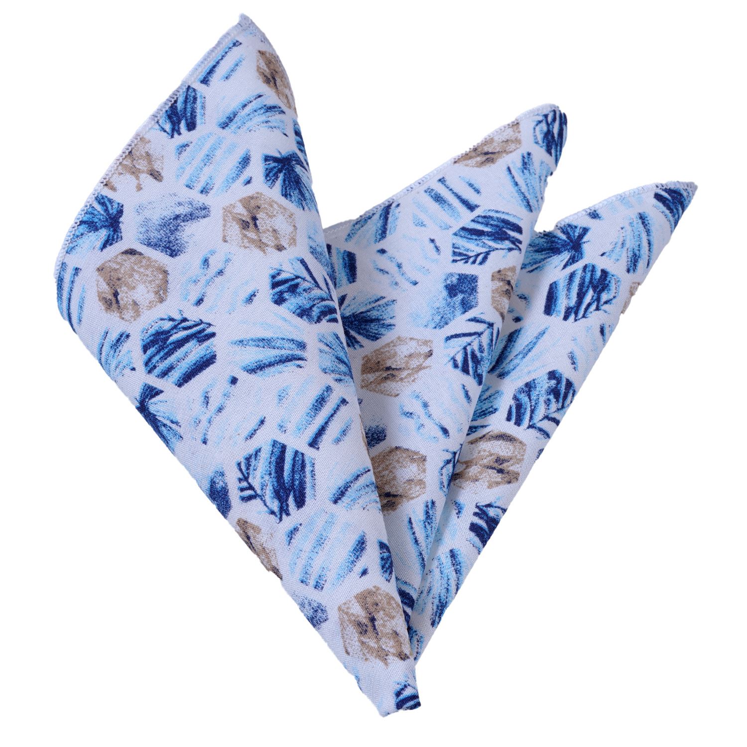 White with Blue Digital Print Pocket Square