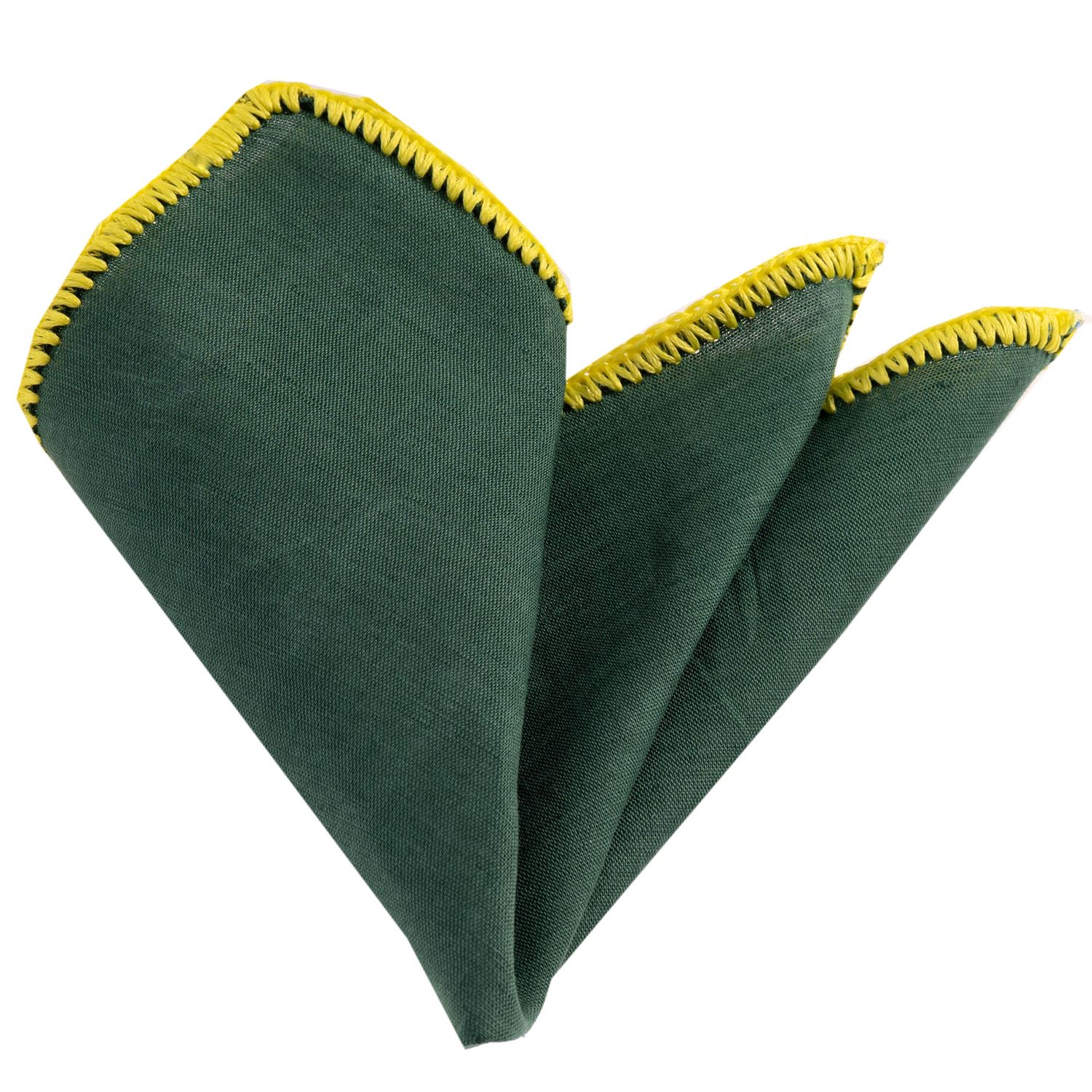 Khaki Natural Linen Handmade Signature Border Pocket Square