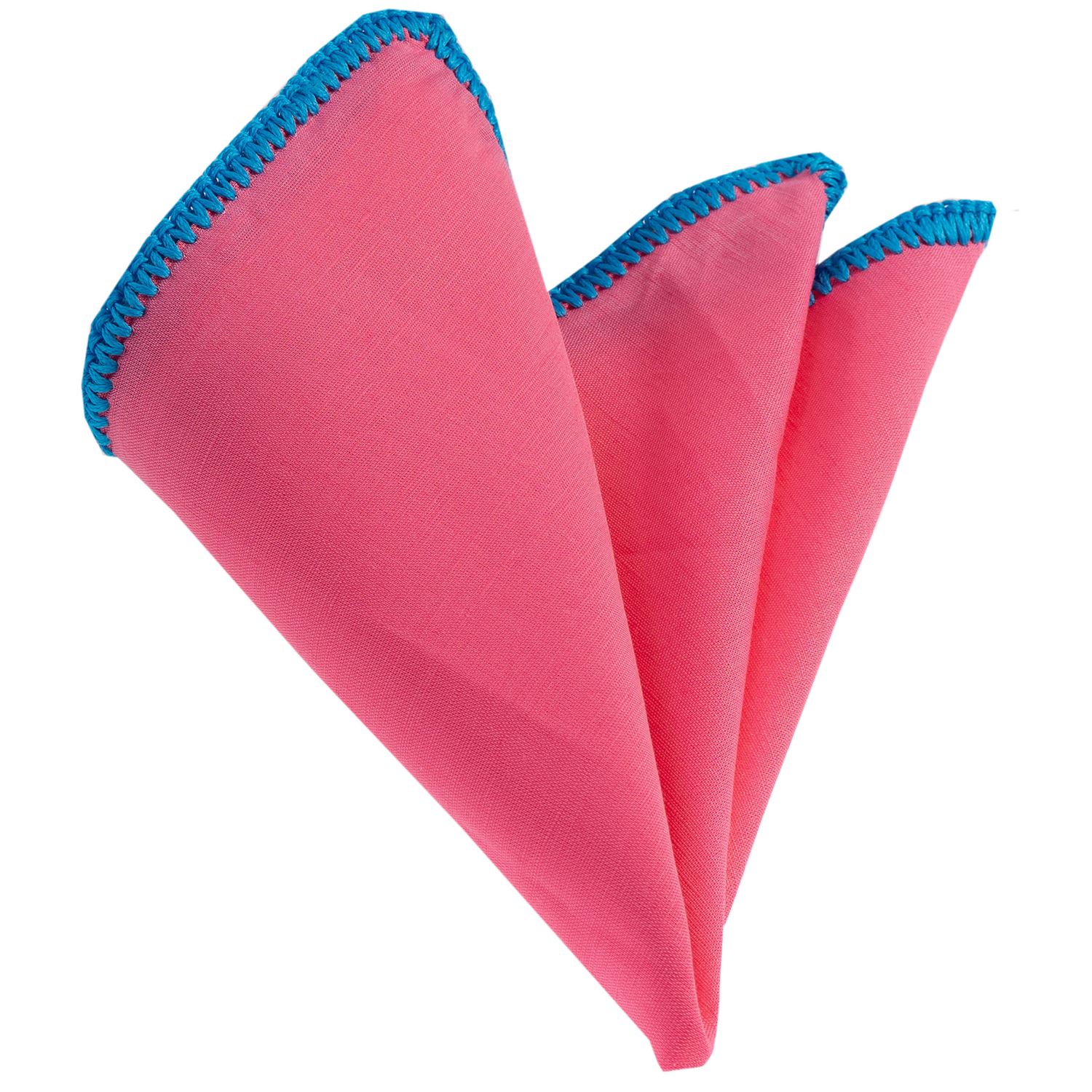 Pink Natural Linen Handmade Signature Border Pocket Square