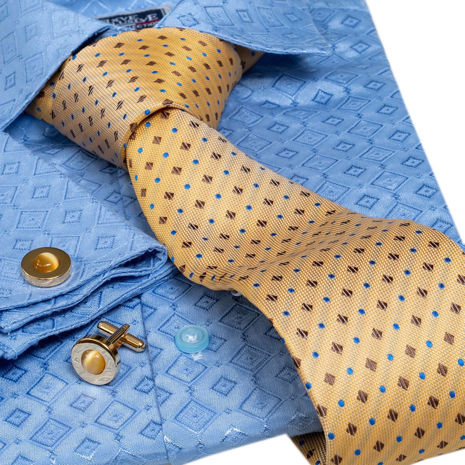 Blue Squares French Cuff Shirt with Tie & Cufflinks