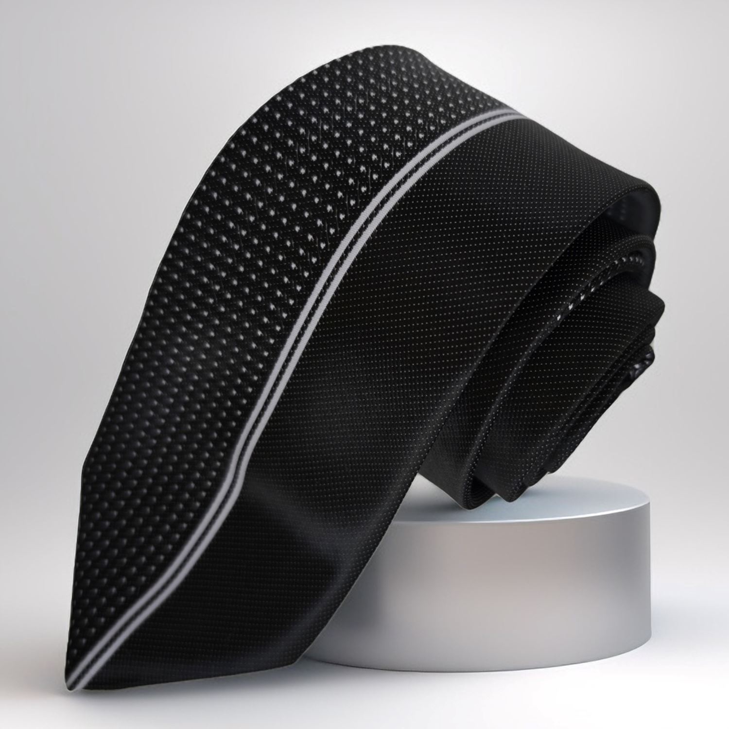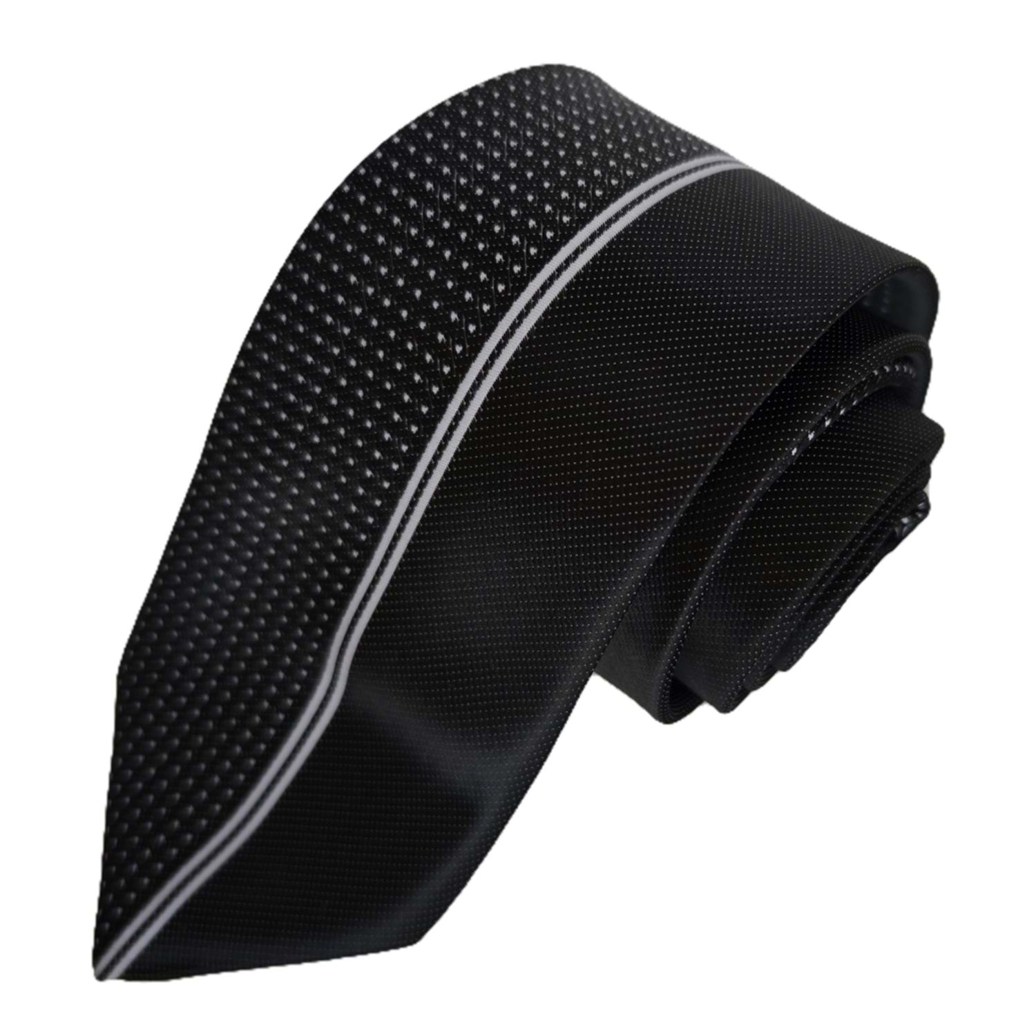 Siyah Puantiyeli Yarısı Sade Özel Kesim İtalyan Kravat