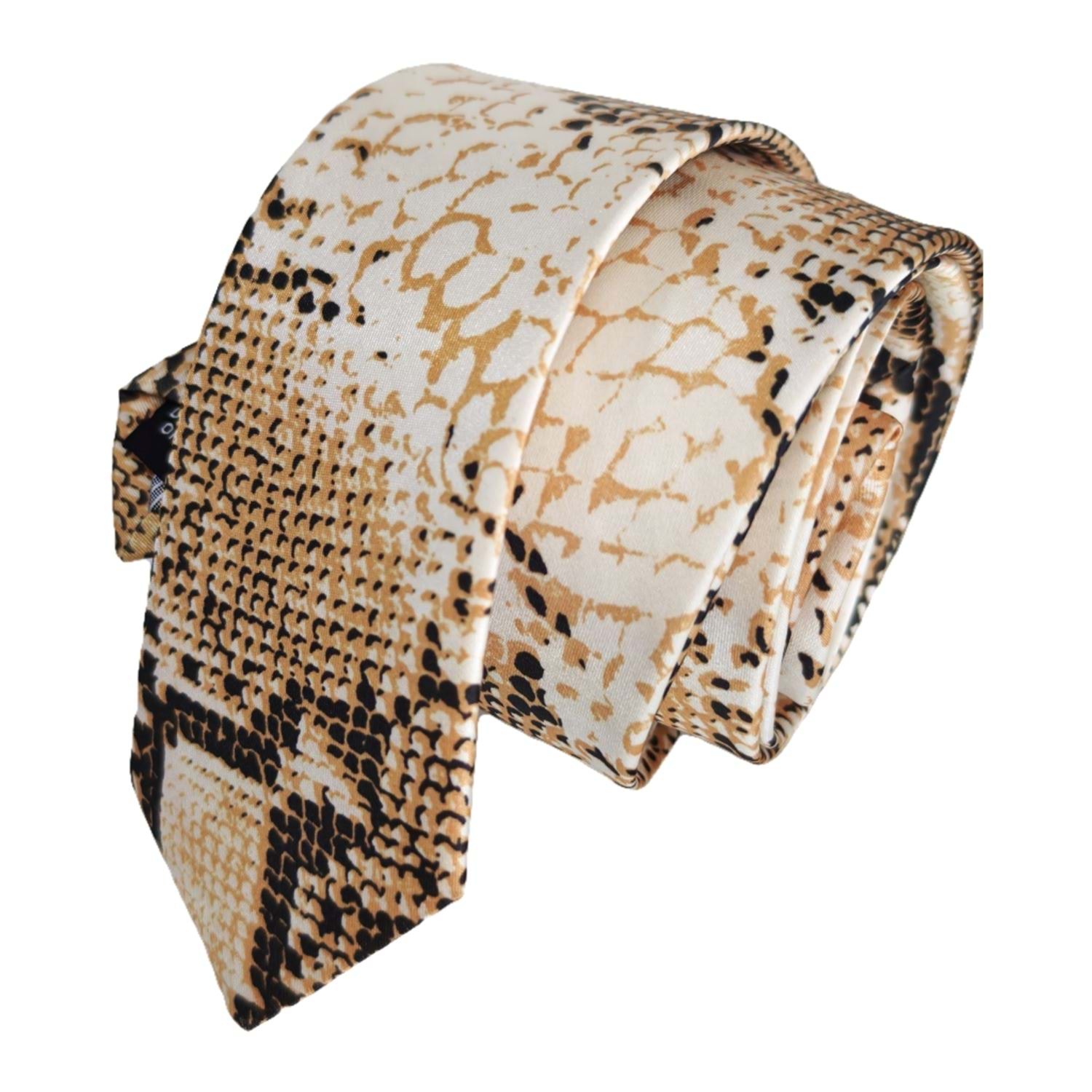 Beige Gold Black Snakeskin Pattern Printed Slim Fashion Slim Tie
