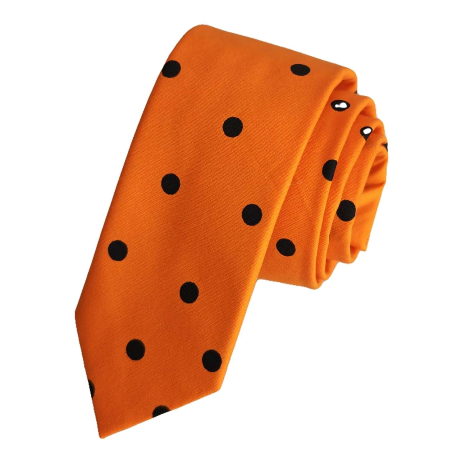 Black Polka Dot Printed Slim Fashion Slim Tie on Orange