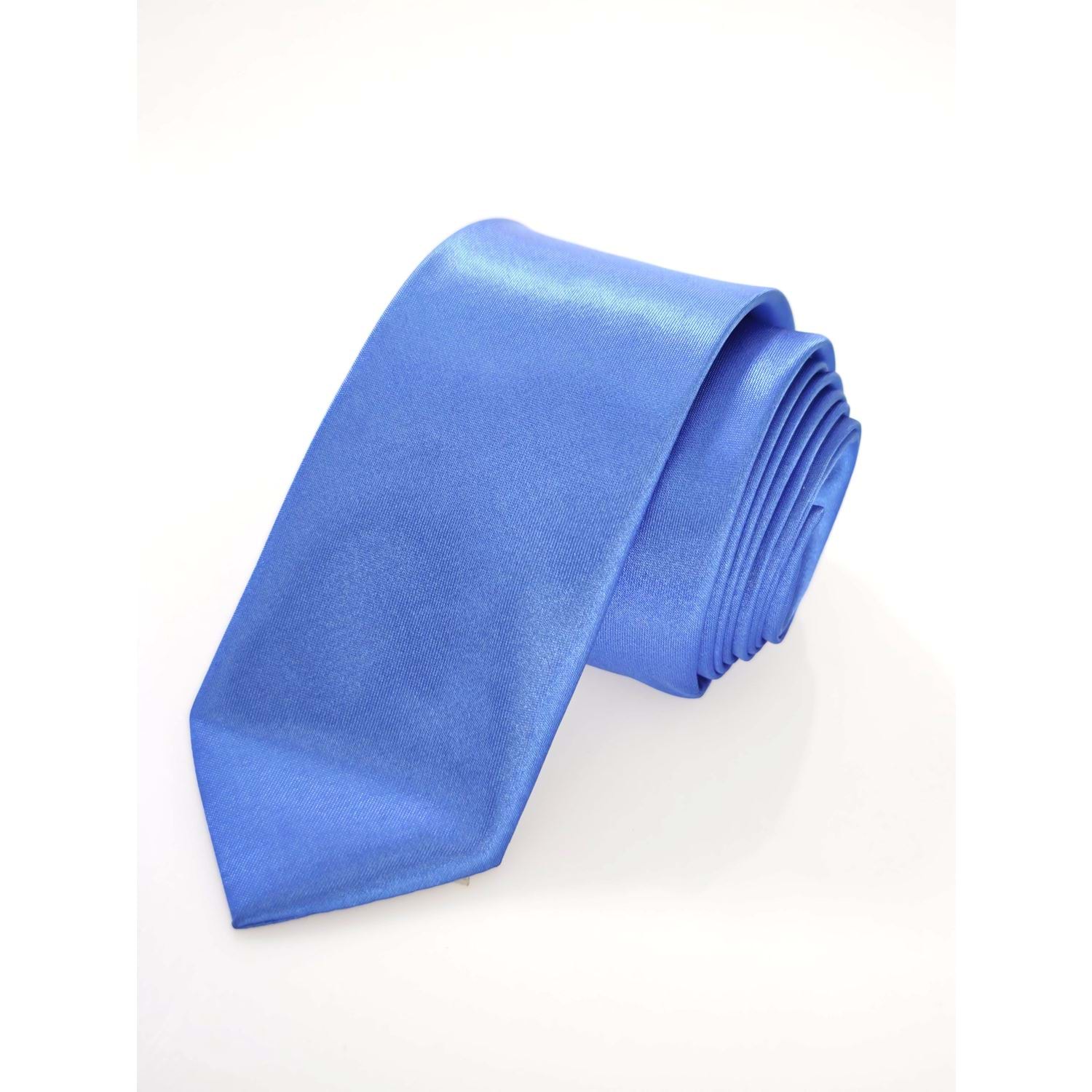 Mavi Sade Dupon Saten Dokuma İnce Moda Slim Kravat