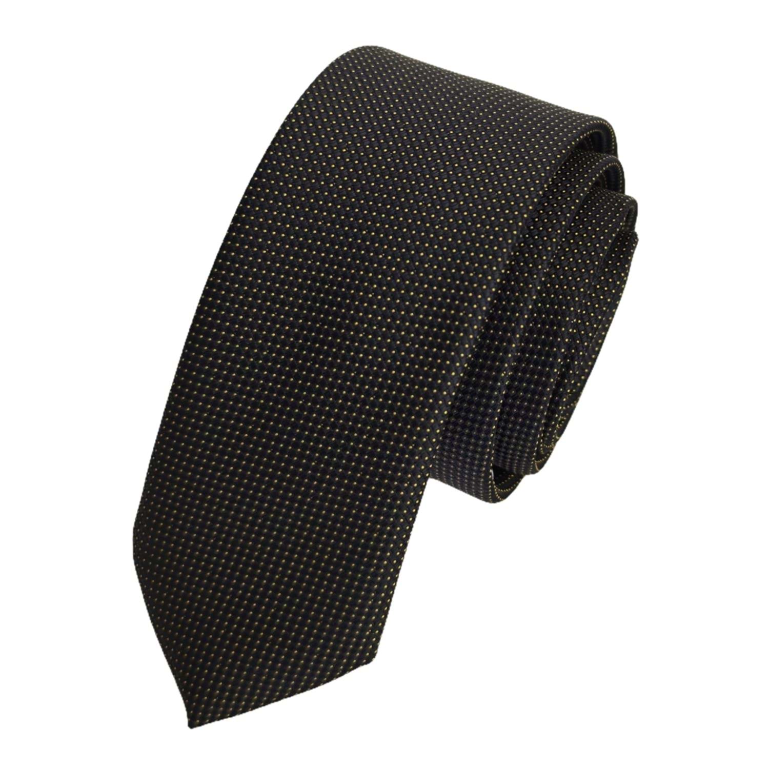 Siyah üzerine Mikro Sarı Puantiyeli jakarlı İnce Moda Slim Kravat