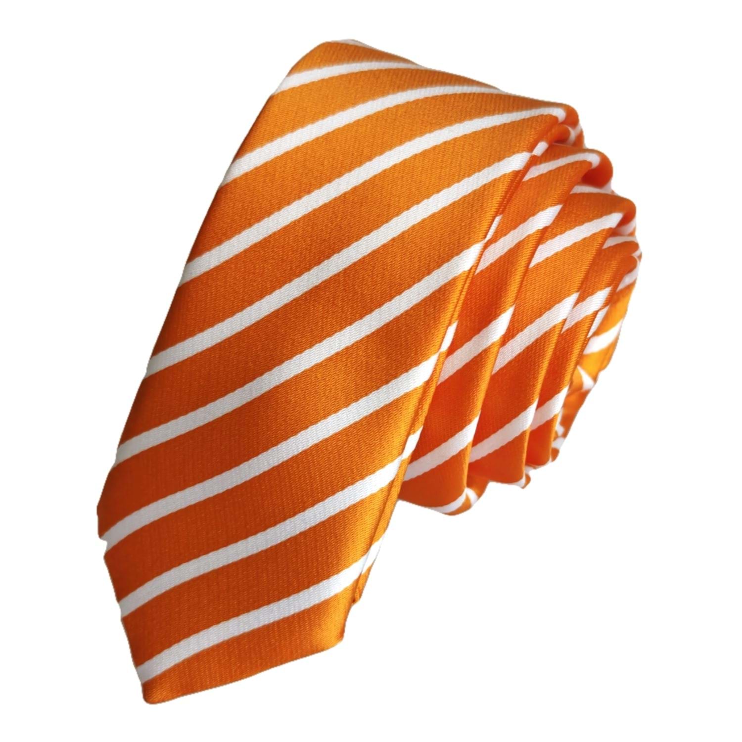 Turuncu Beyaz Çizgili Jakar Dokuma İnce Moda Slim Kravat