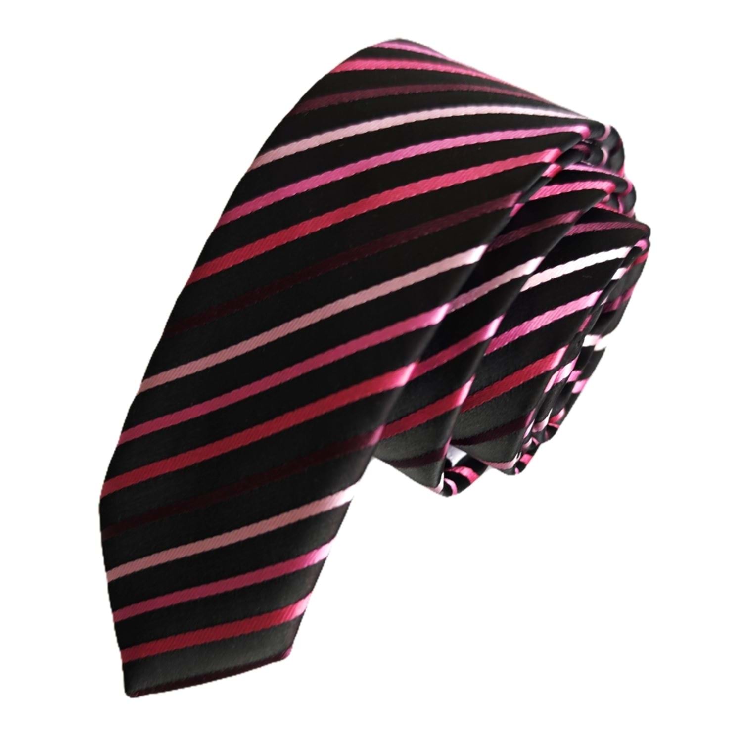Pink Shades Striped Jacquard Woven Black Slim Fashion Slim Tie