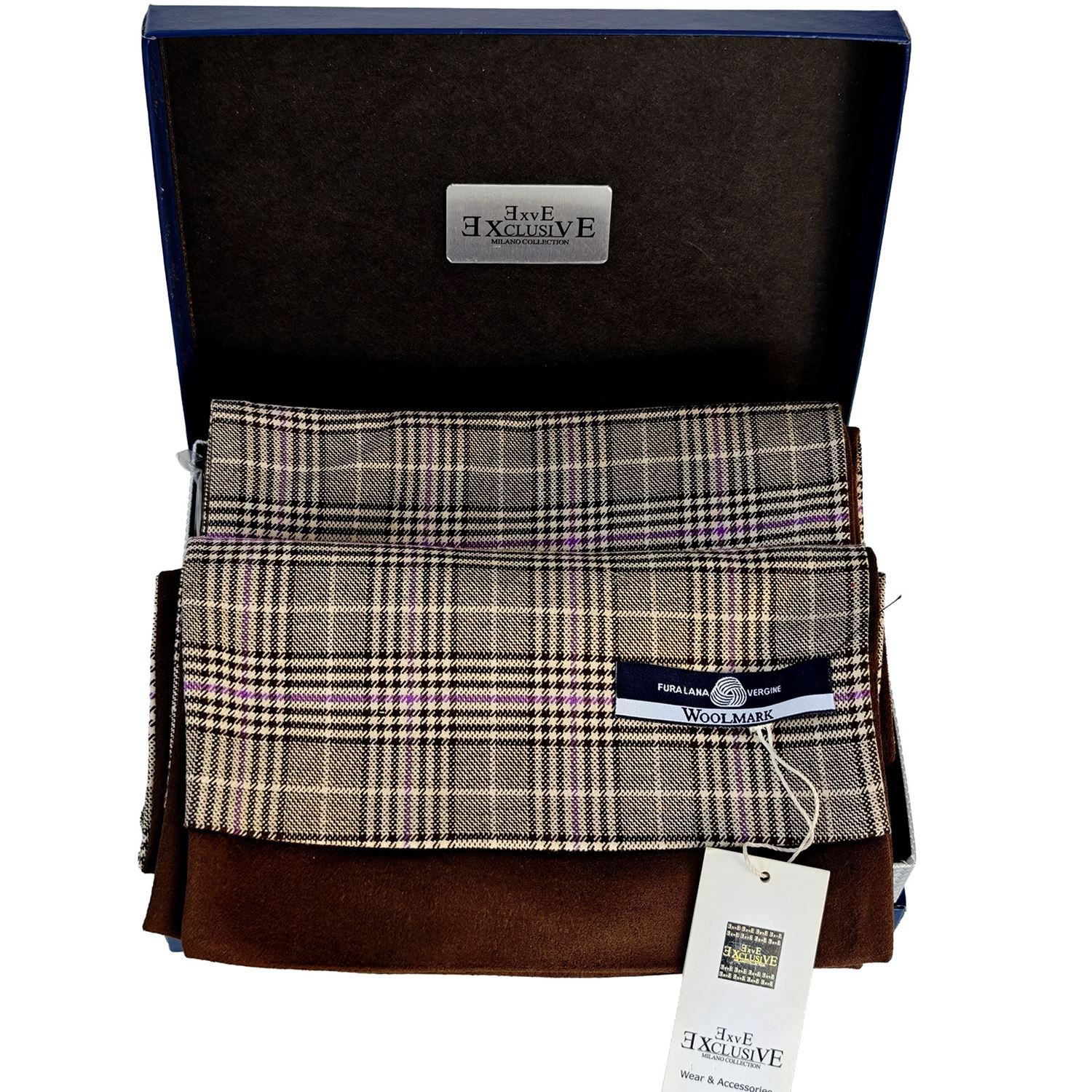 Lilac Beige Plaid Mens Scarf with PU Leather Gift Box