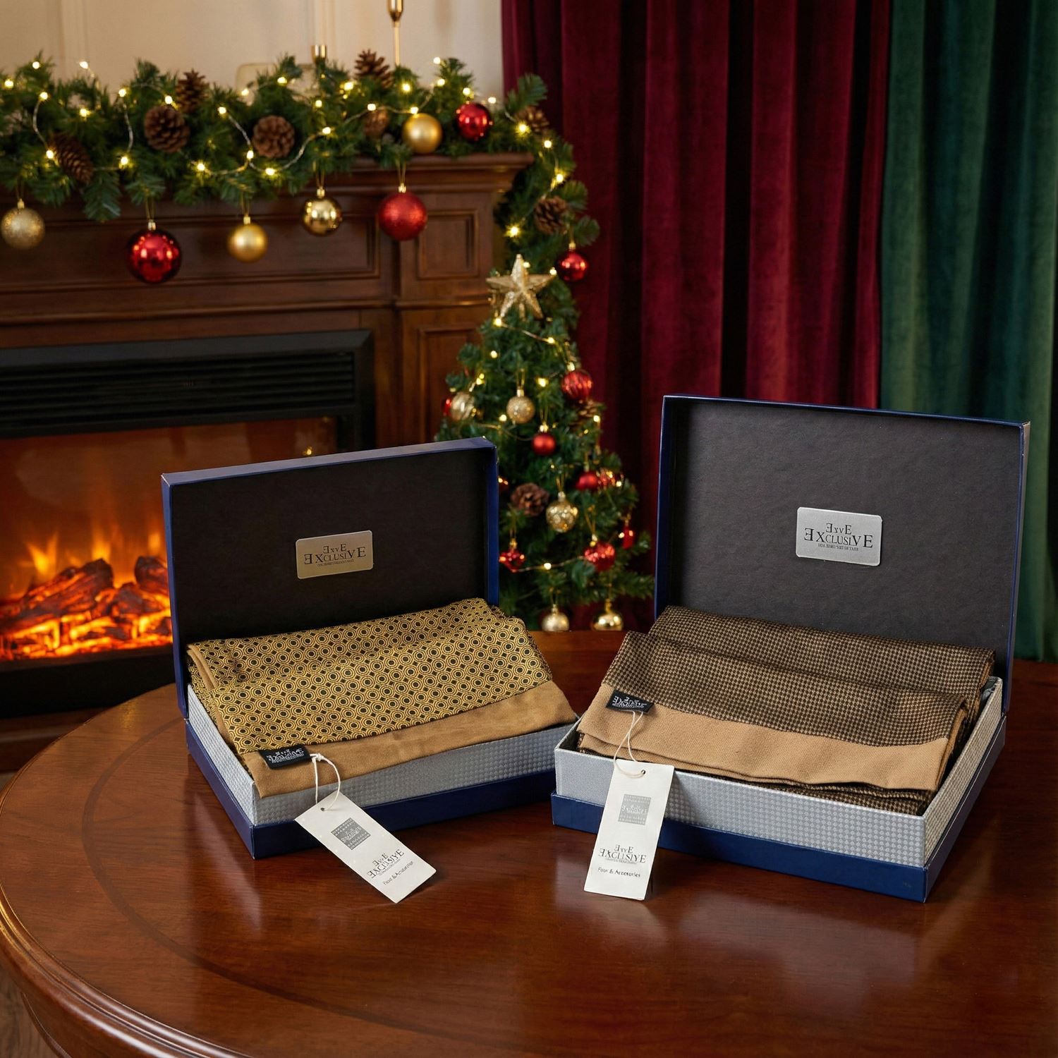 Brown Beige Crowbar Mens Scarf with PU Leather Gift Box