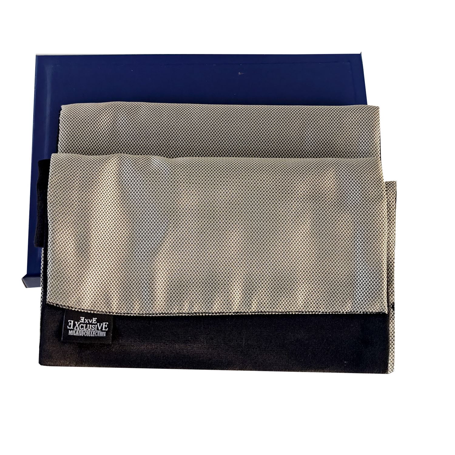 Silver Black Designer Mens Scarf with PU Leather Gift Box