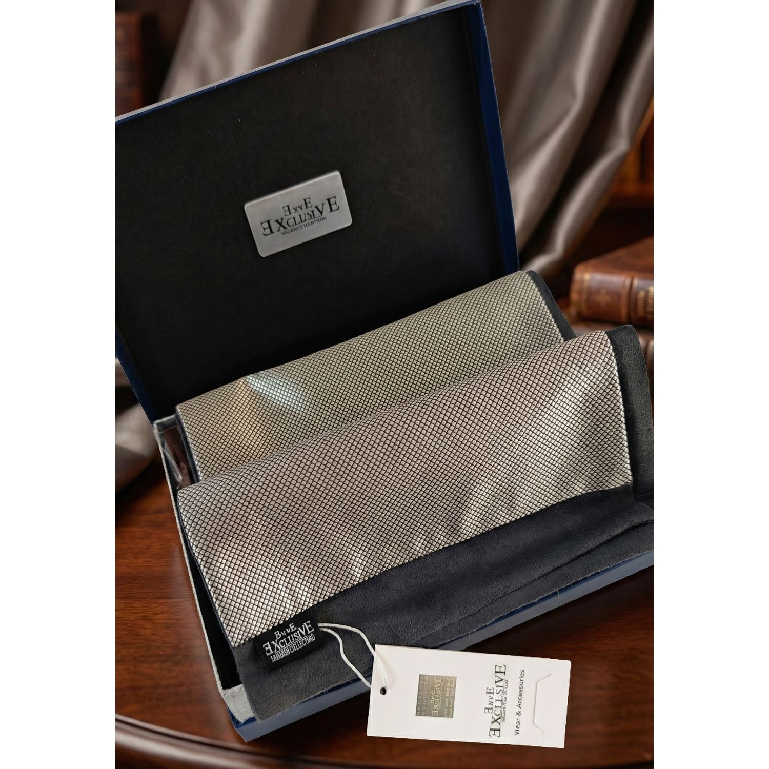 Silver Black Jacquard Mens Scarf with PU Leather Gift Box