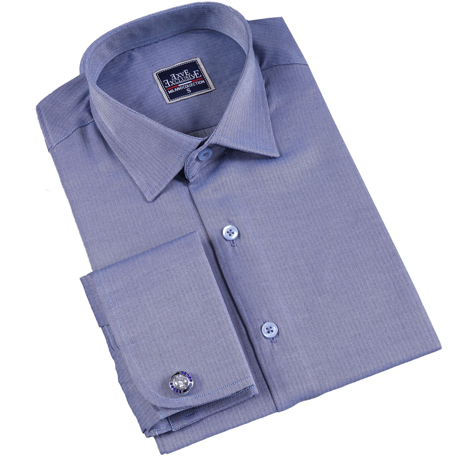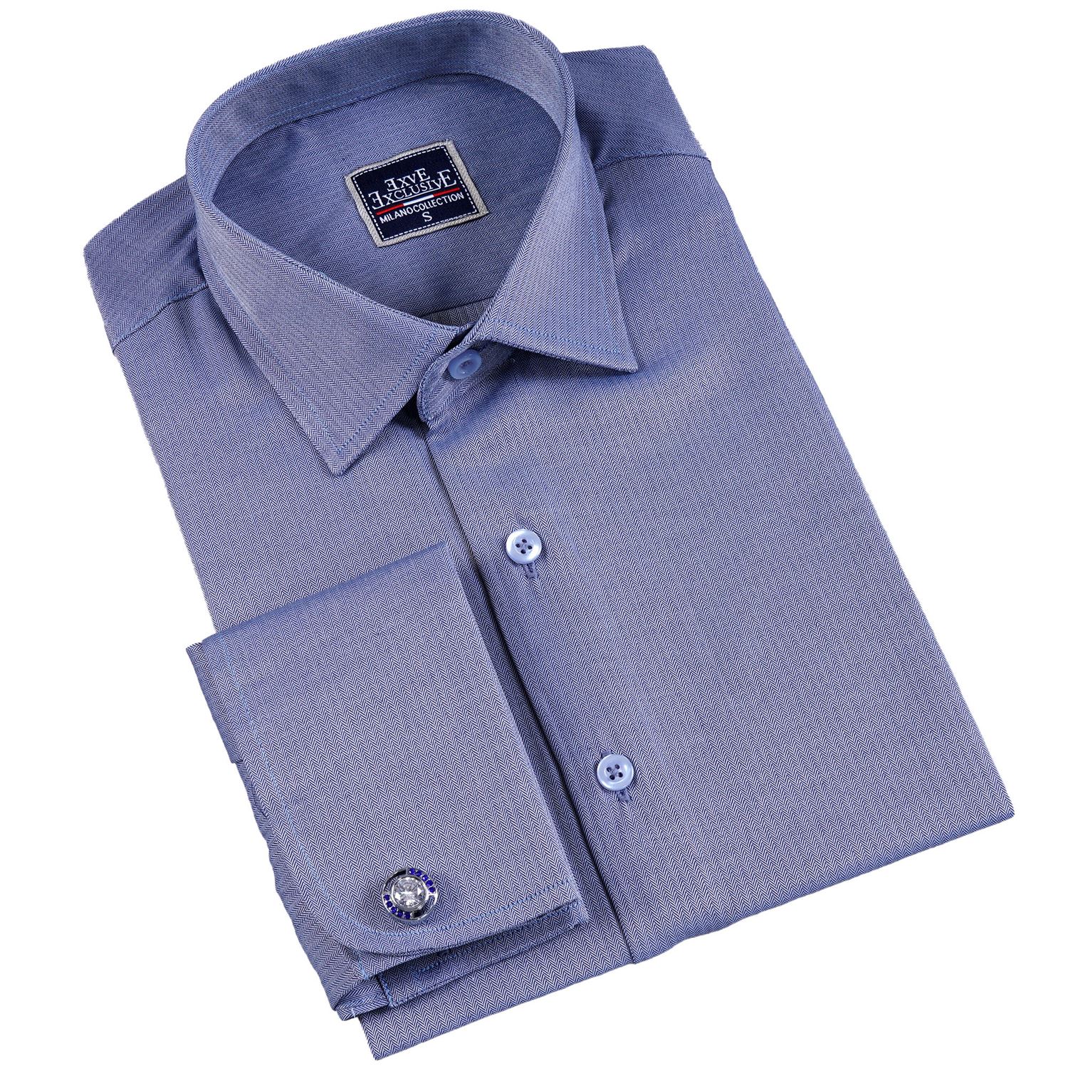 Blue Herringbone French Cuff Shirt