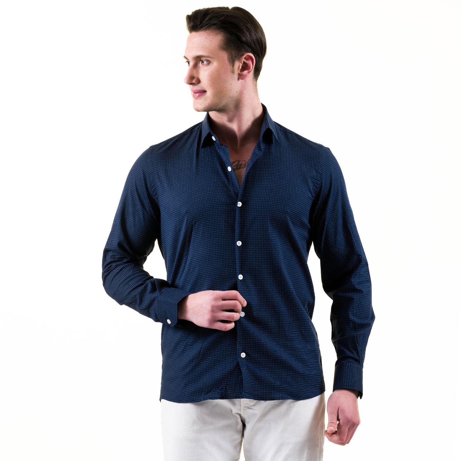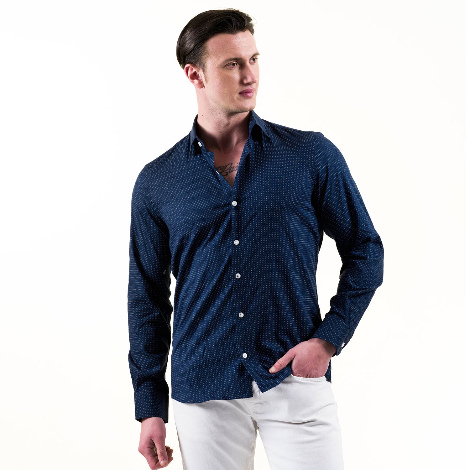 Navy Digital Printed Gradient Polka Dot Men's Shirt
