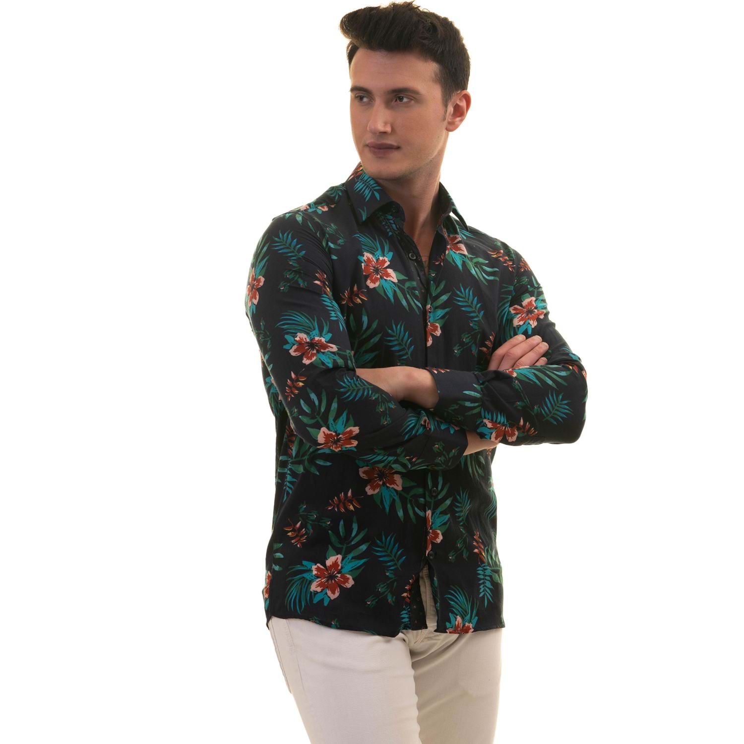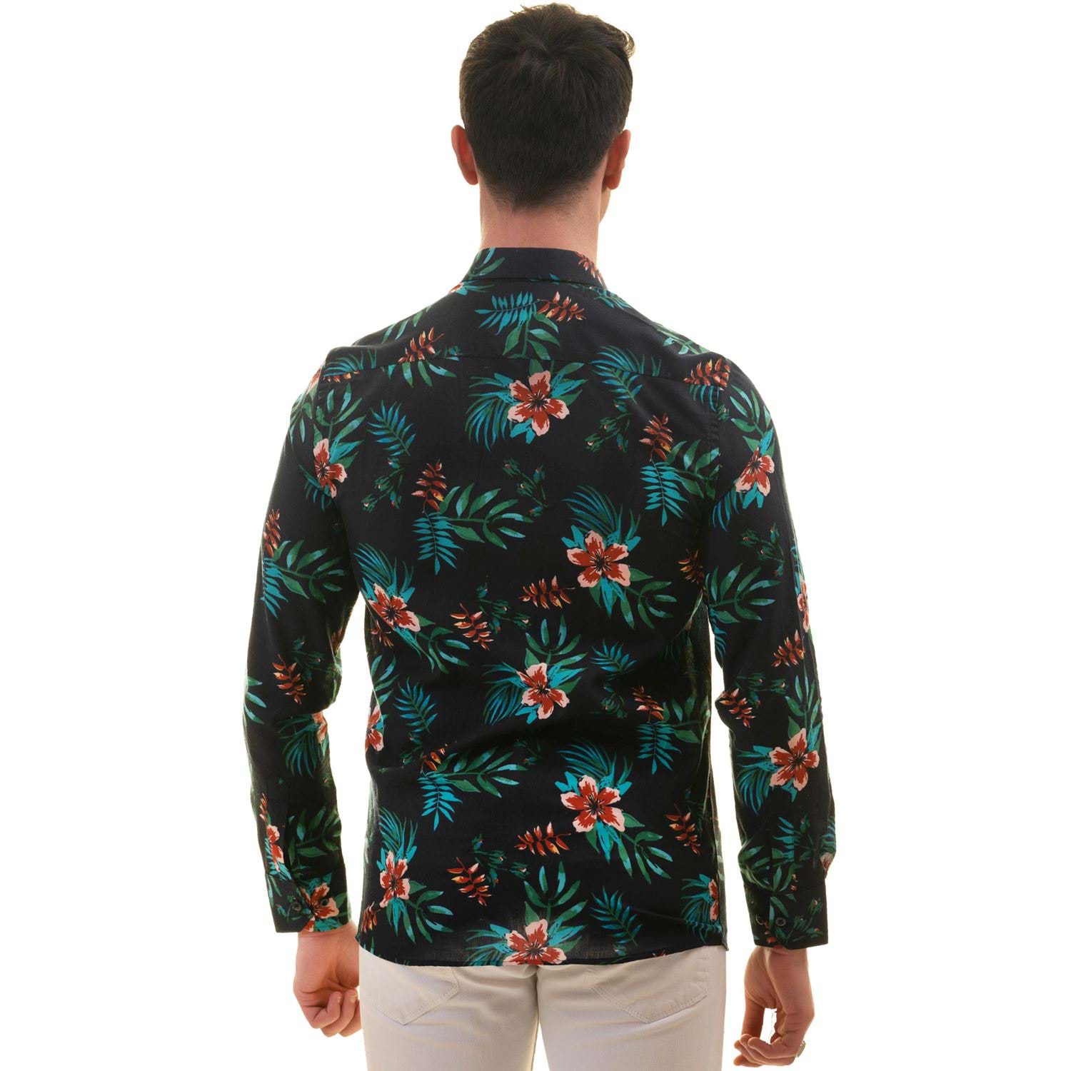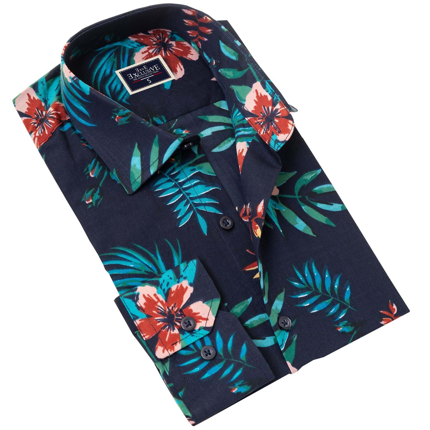 Navy with Tropical Floral Rotation Printing Men's Shirt