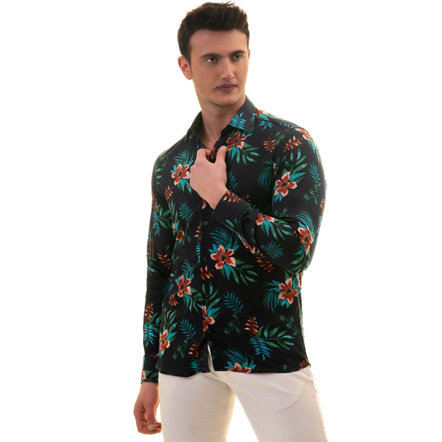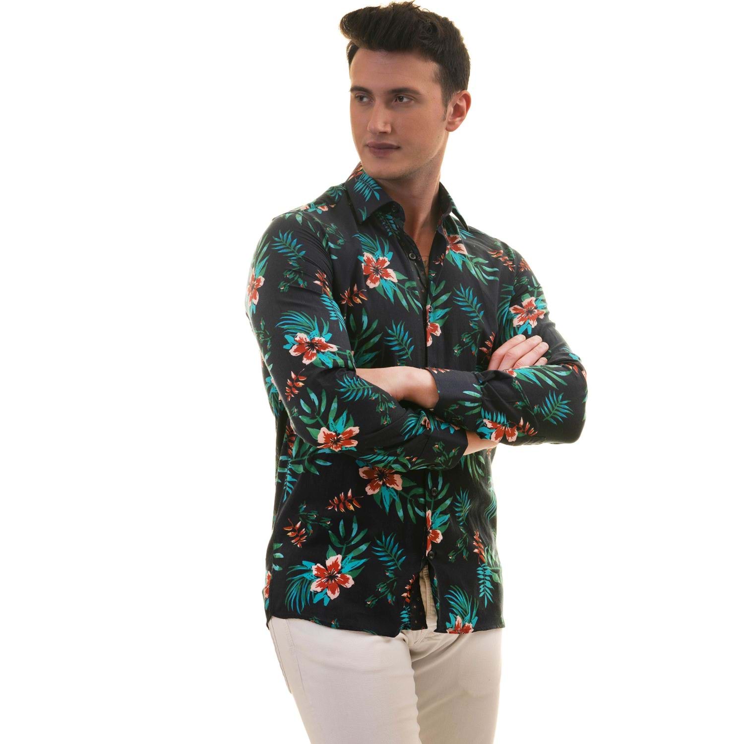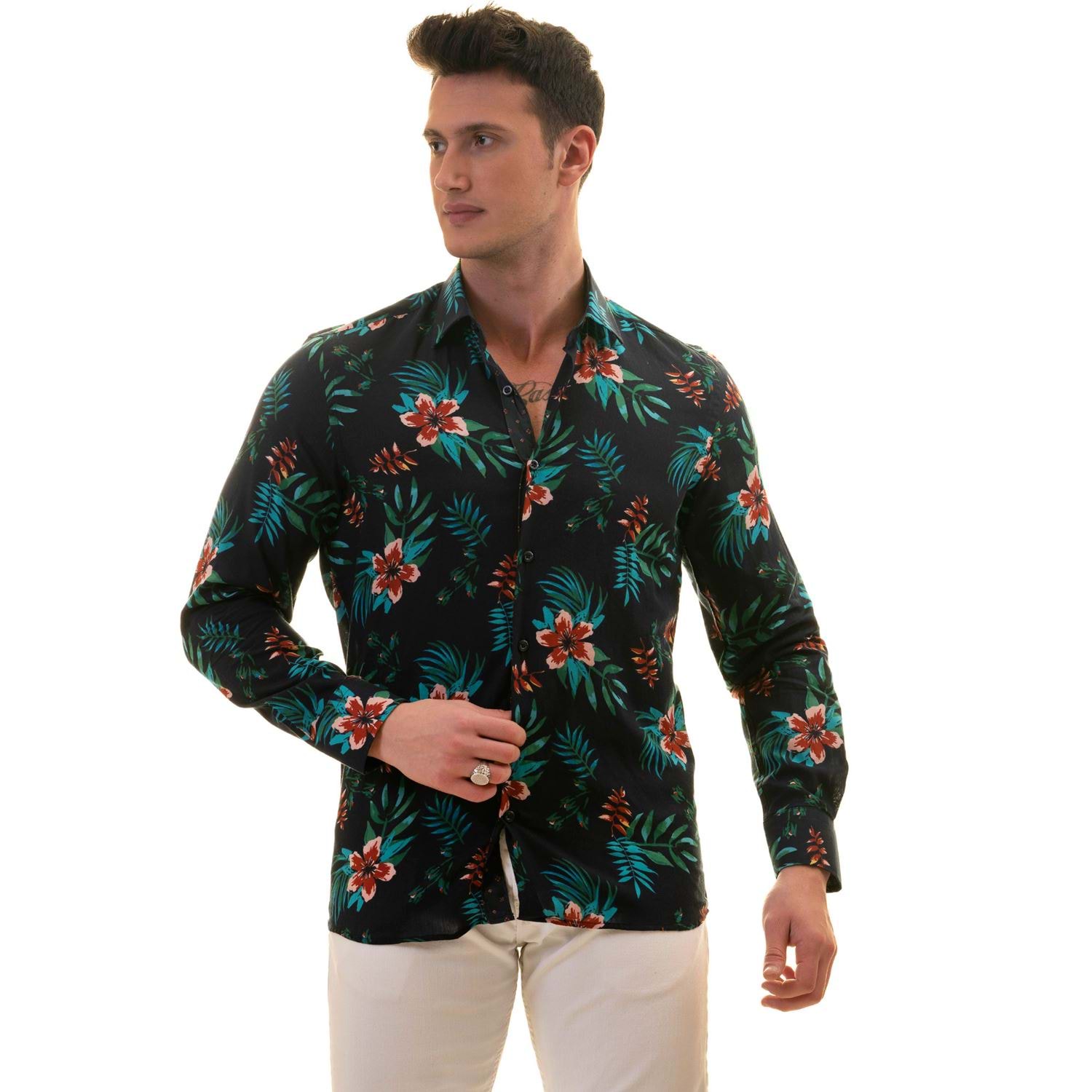 Navy with Tropical Floral Rotation Printing Men's Shirt