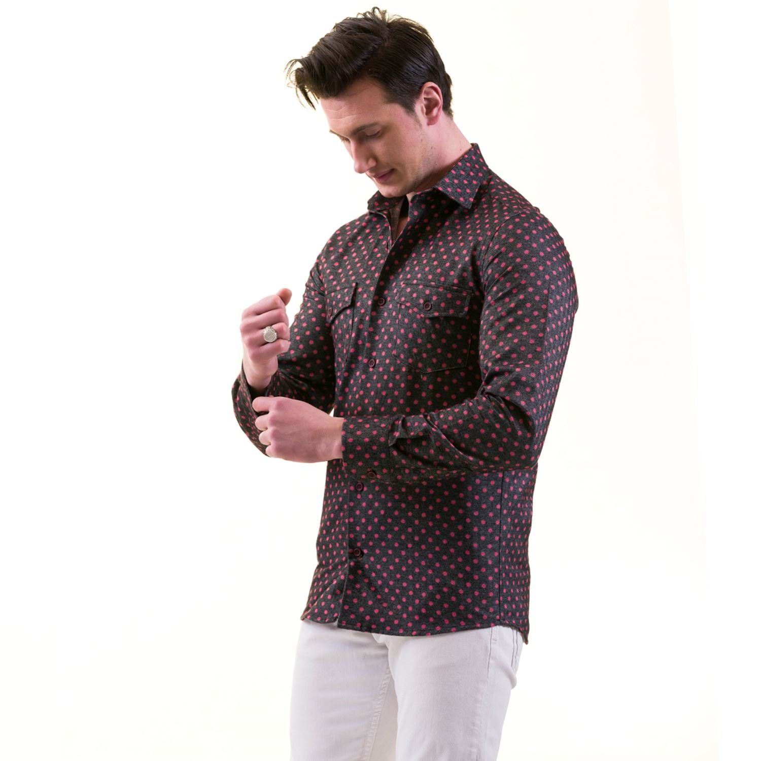 Pink Floral Skull Printed Printed Cotton Men's Shirt