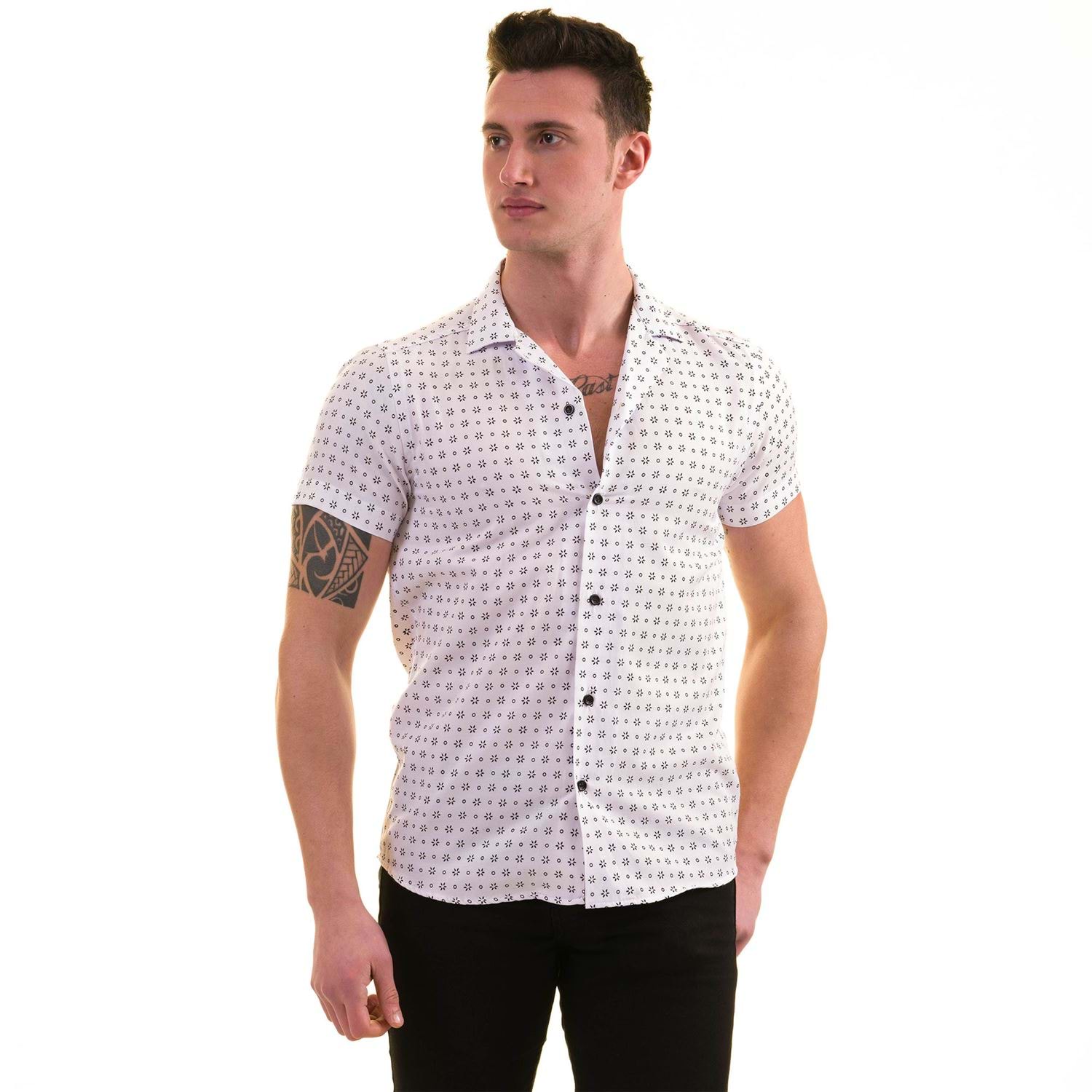 Turquoise with Navy Printed Geometric Men's Short Sleeves Shirt