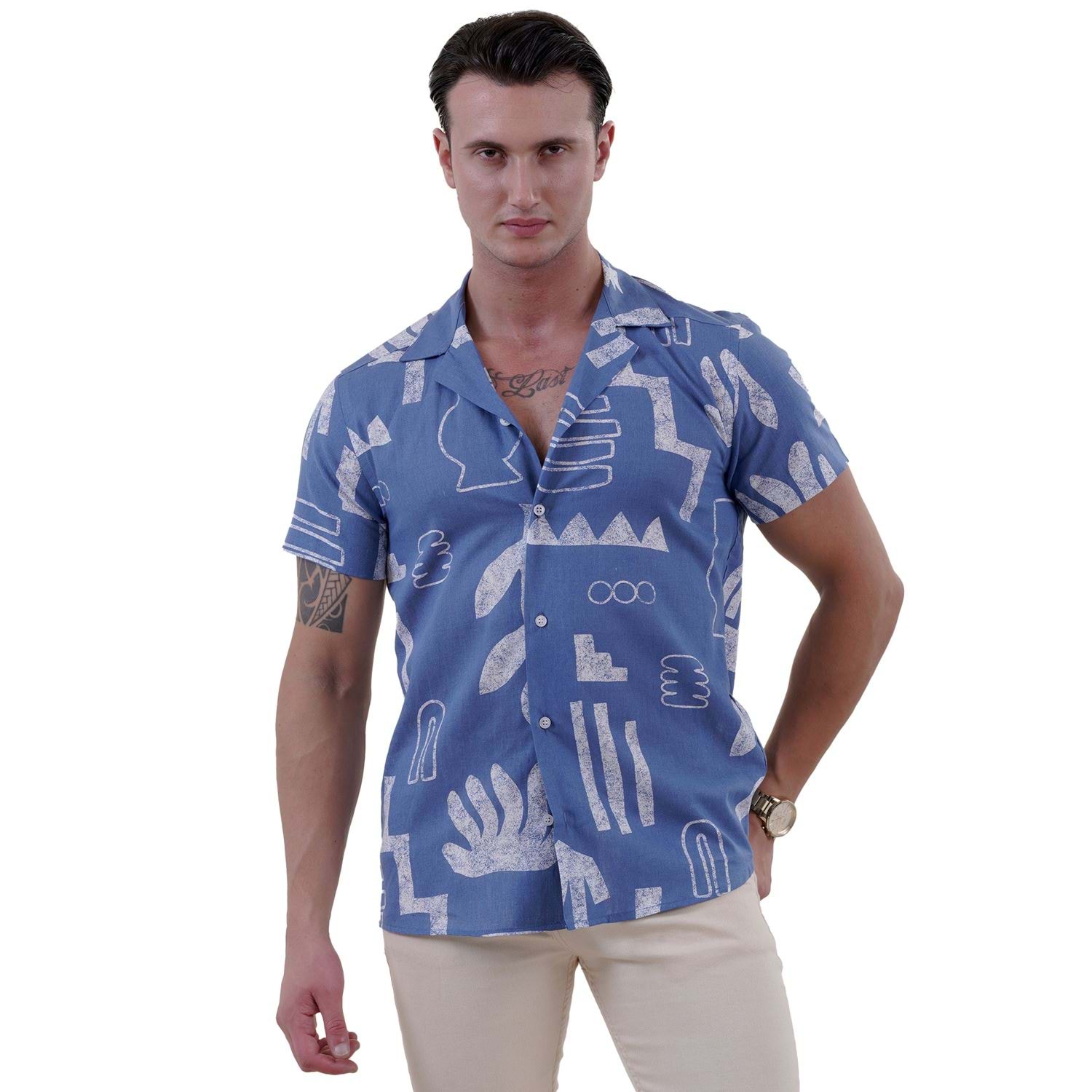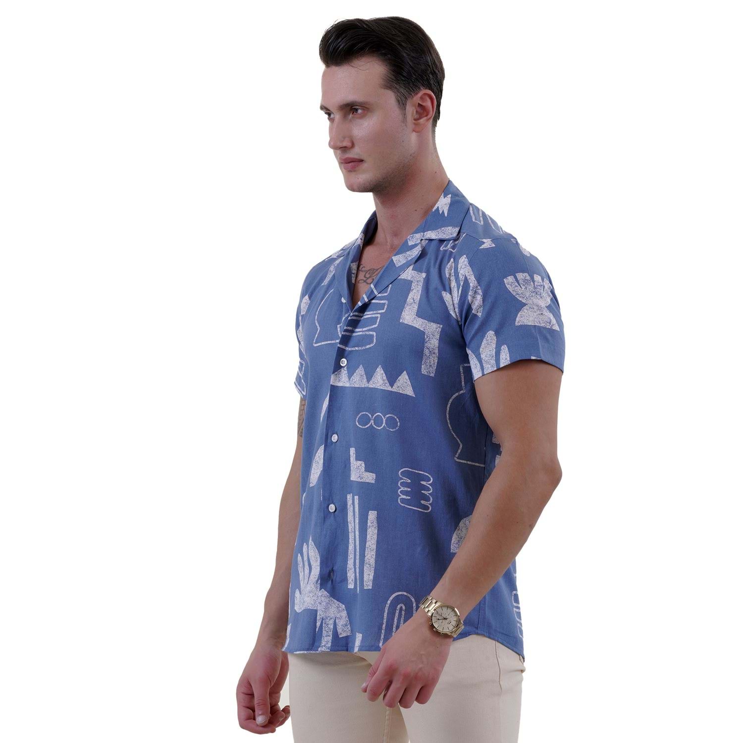 Blue White Ethnic Men's Hawaiian Summer Shirt