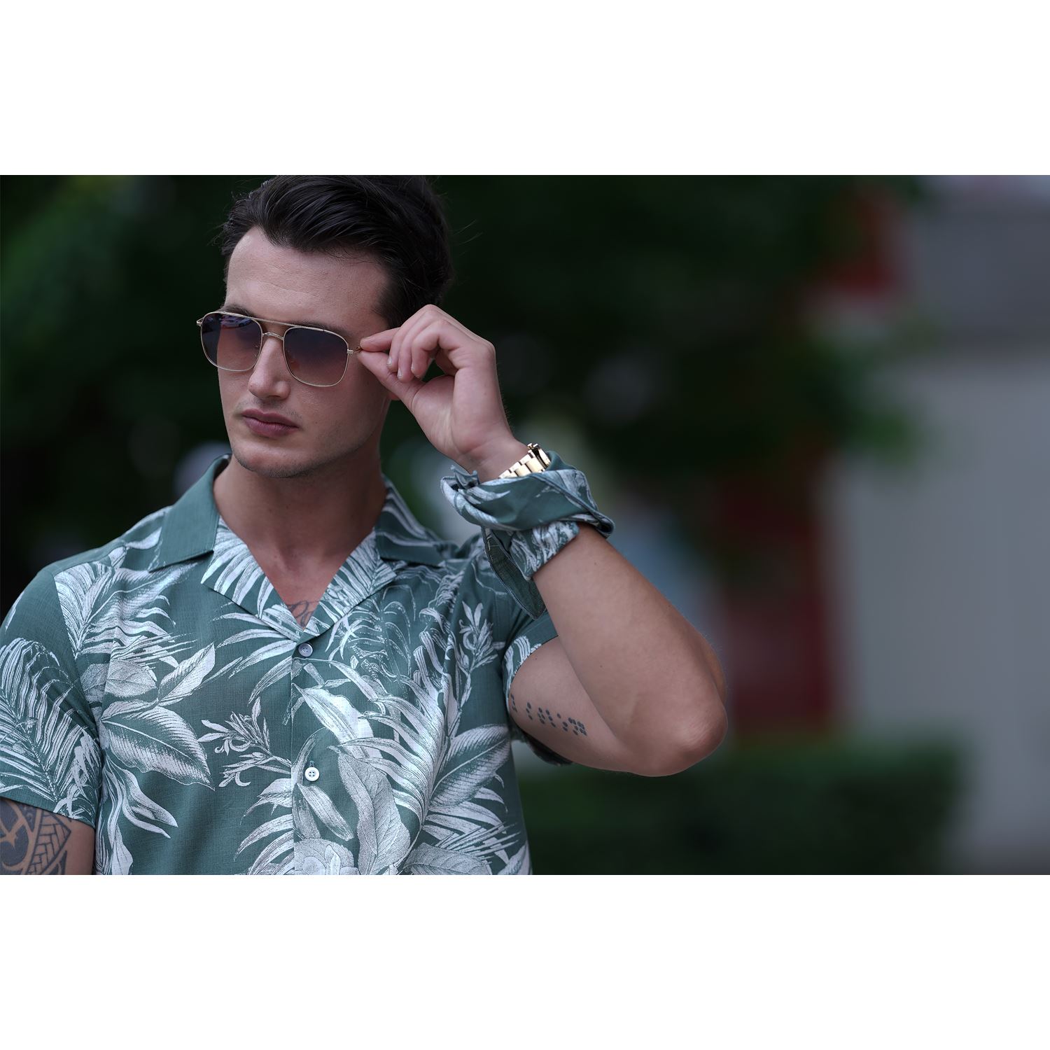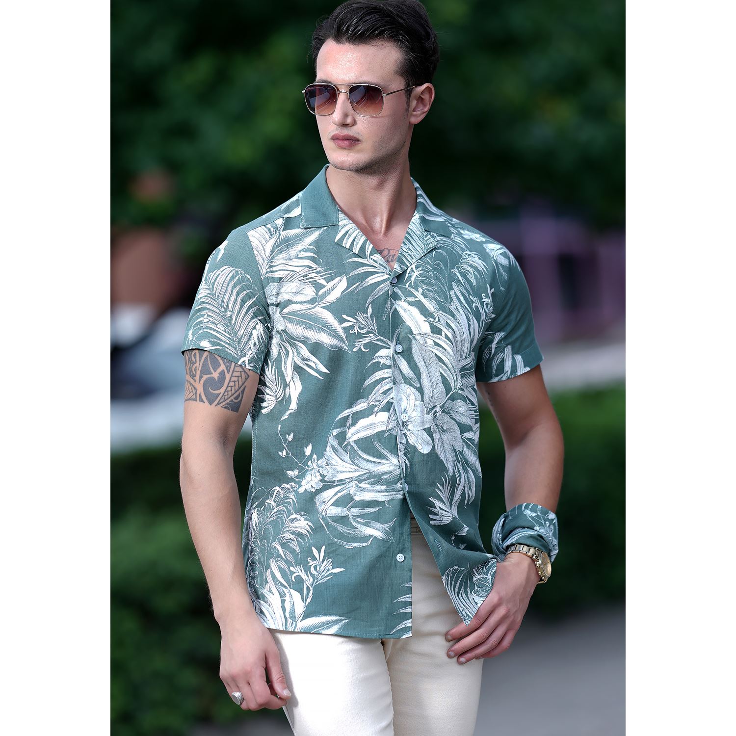 Khaki Green with Palm Trees Men's Hawaiian Summer Shirt