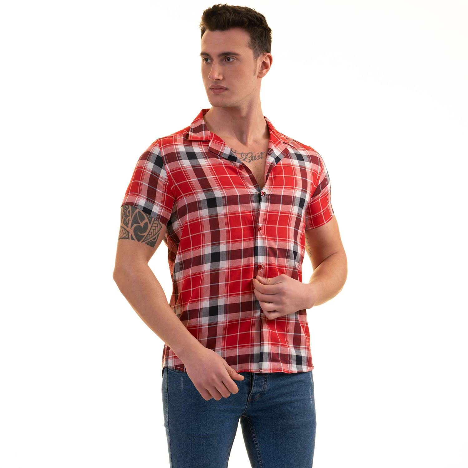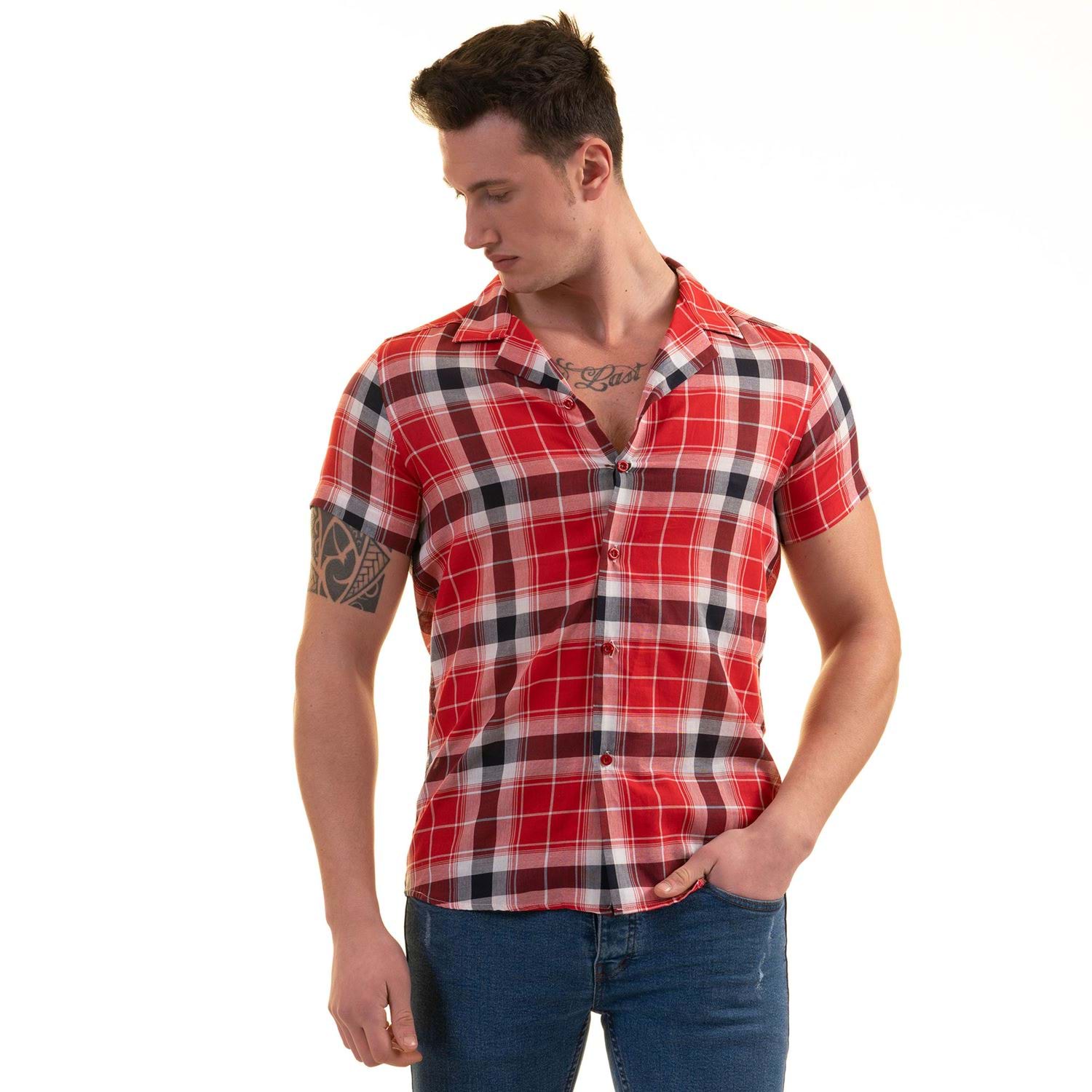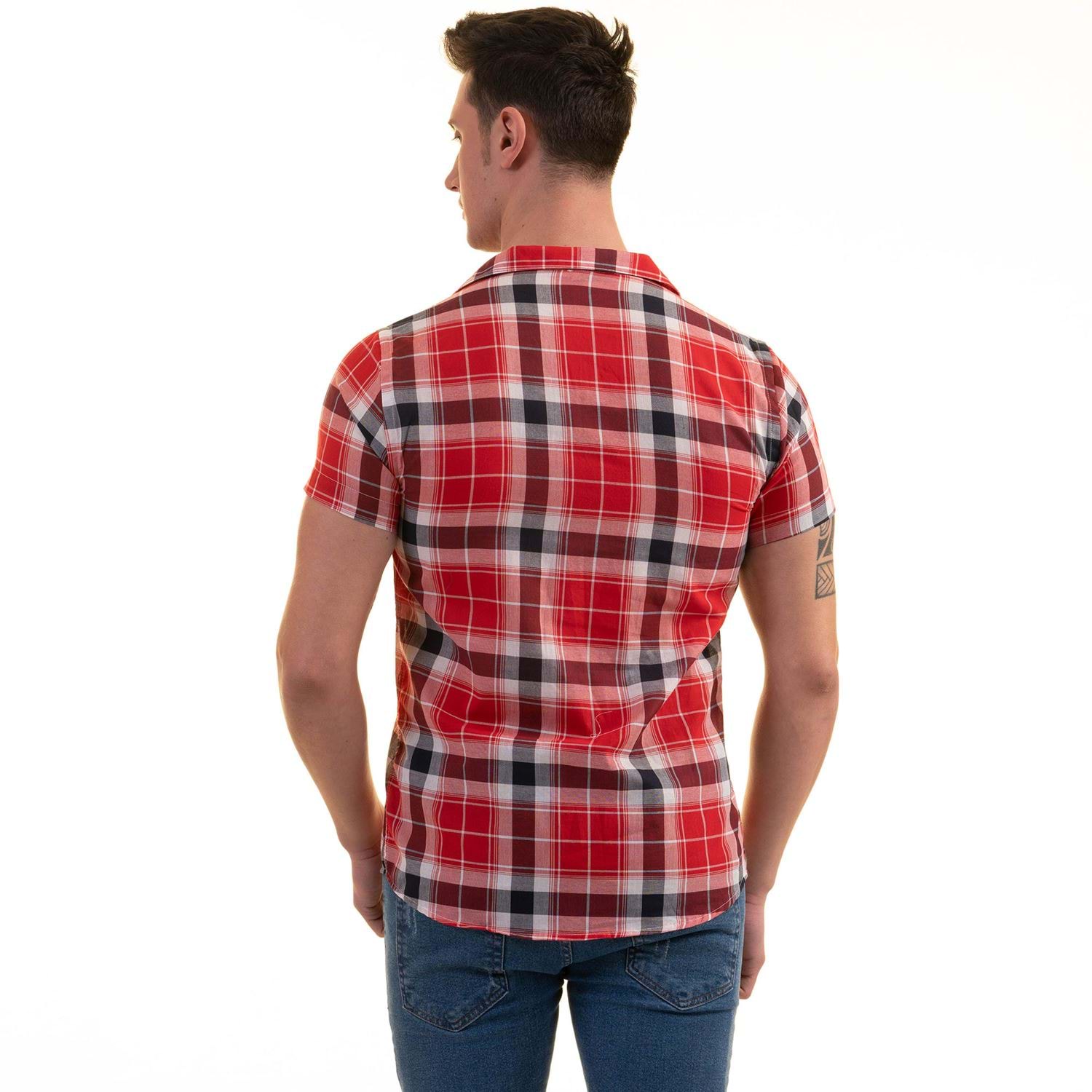 Red and Blue Floral Men's Camp Collar Short Sleeves Shirt