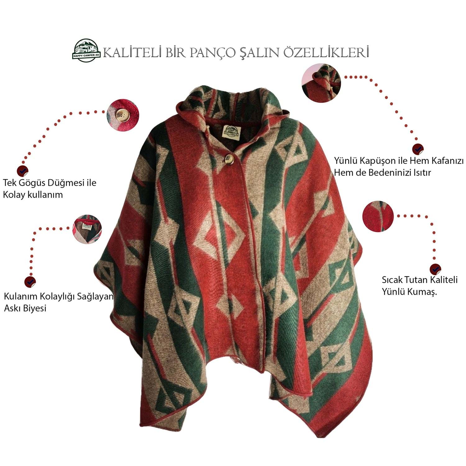Green Beige Red Hooded Unisex Ethnic Camper Poncho