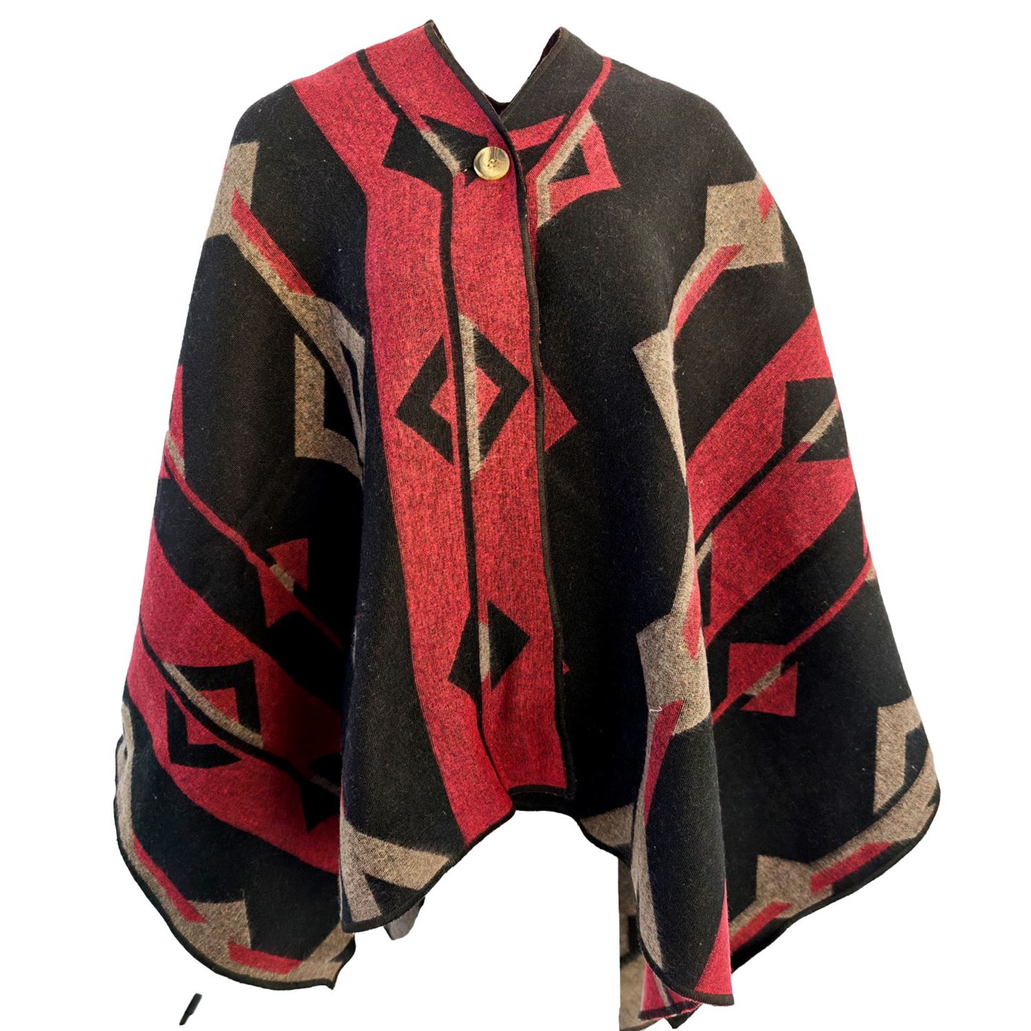 Red Beige Black Hooded Unisex Ethnic Camper Poncho